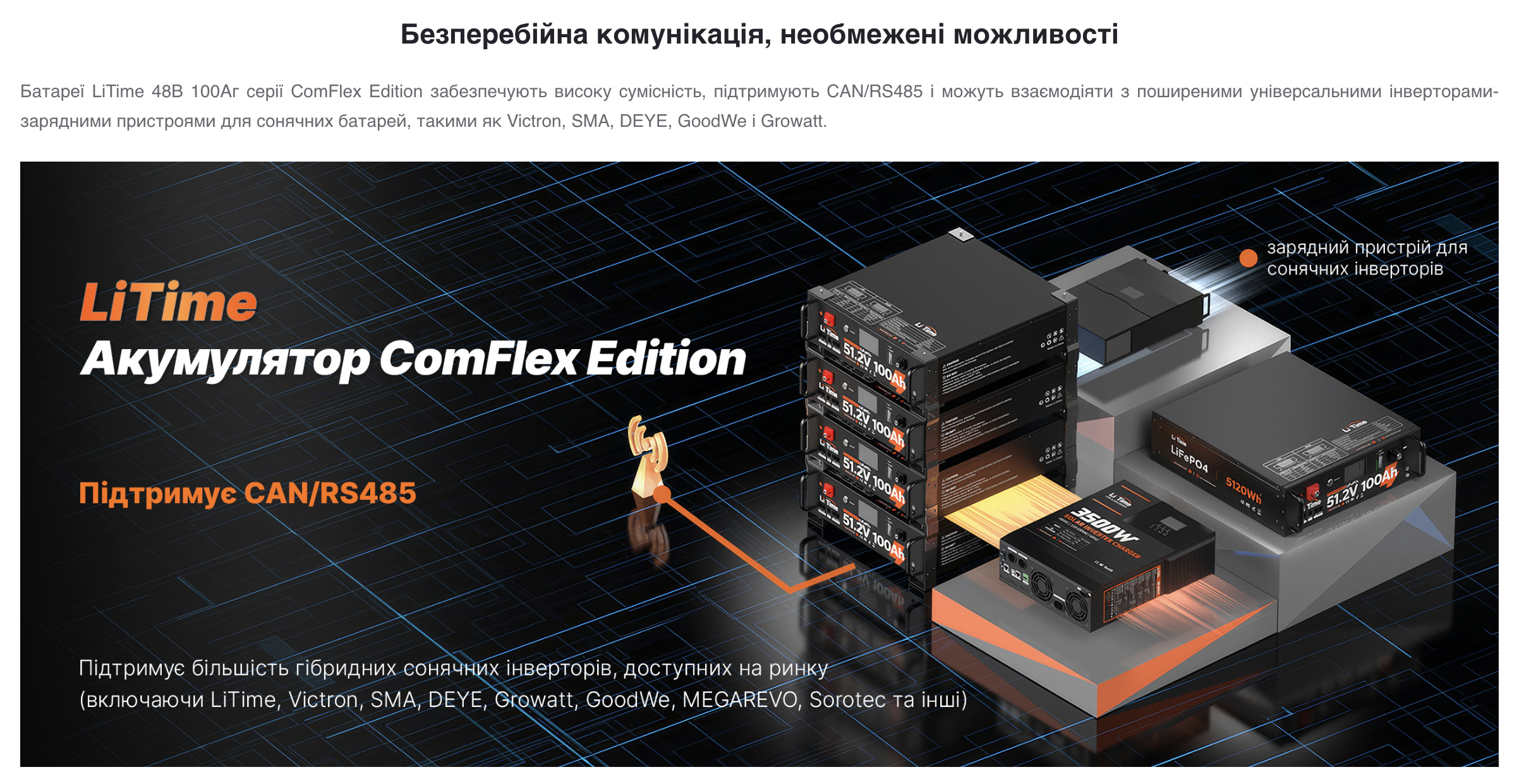 - Літієвий акумулятор Li Time LiFePO4 51.2V 100Ah у версії ComFlex.