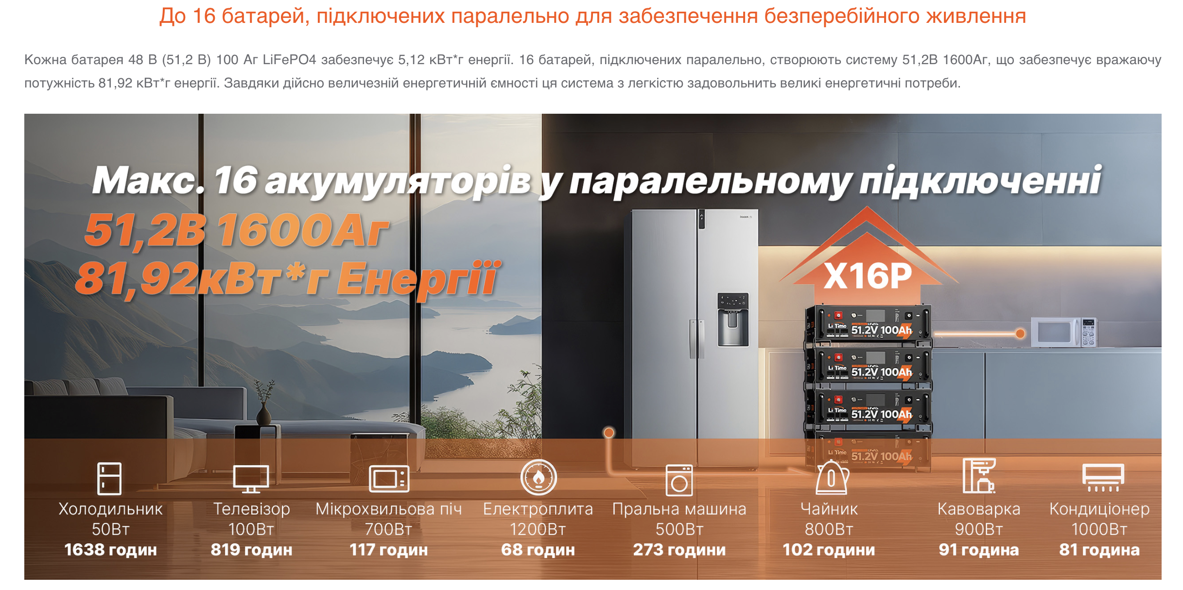 - Максимальна кількість паралельних з'єднань: 16 штук, для створення потужних енергобанків.