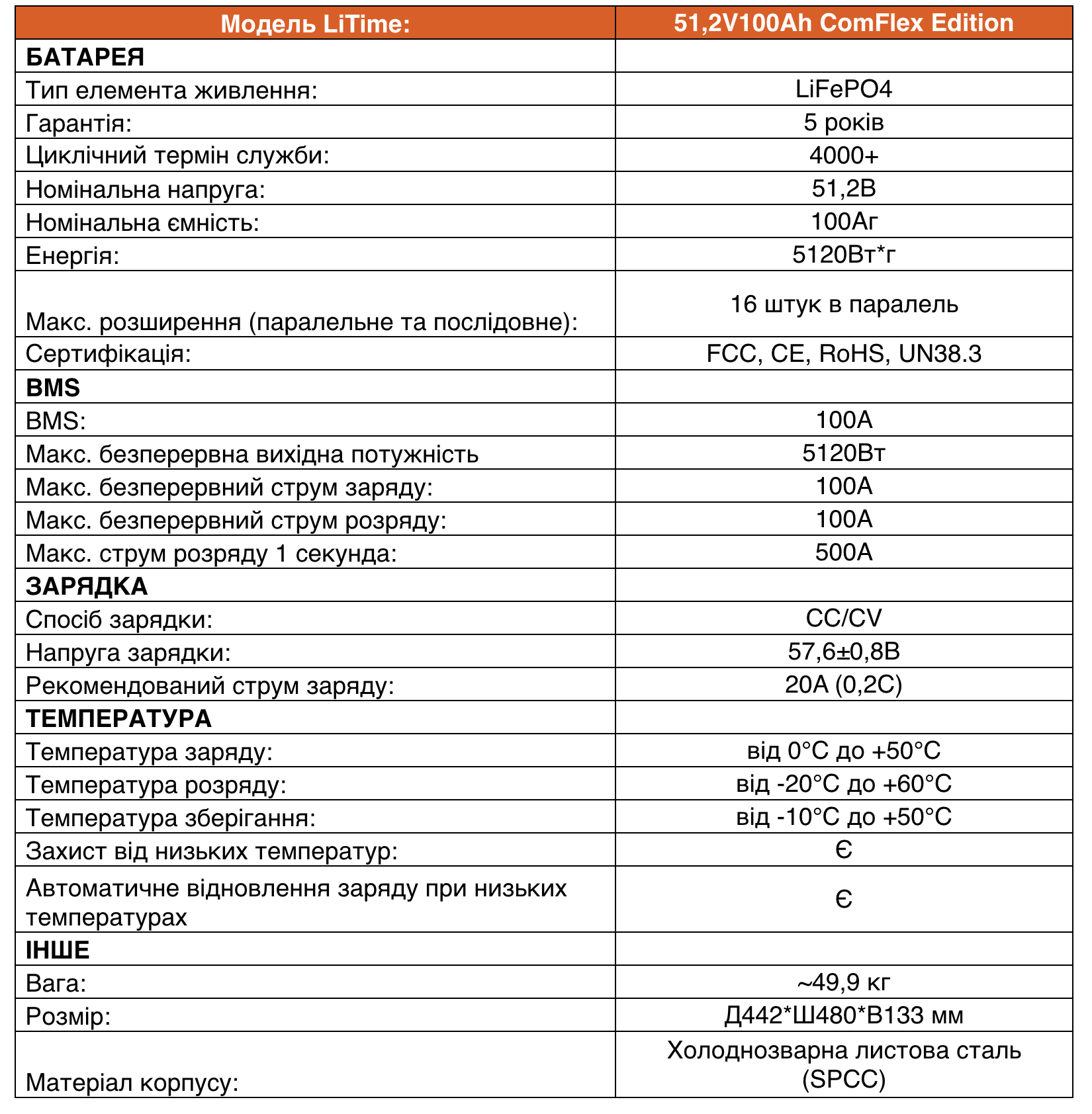 Конкретніше про Time LiFePO4 51.2V 100Ah ComFlex Edition