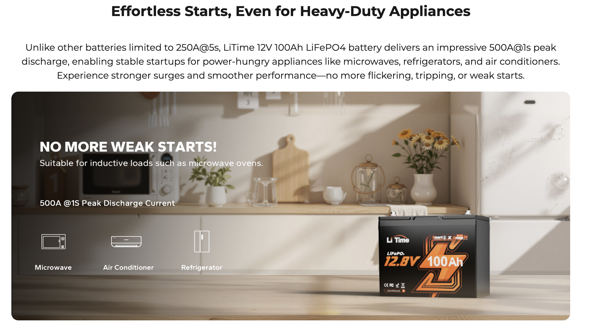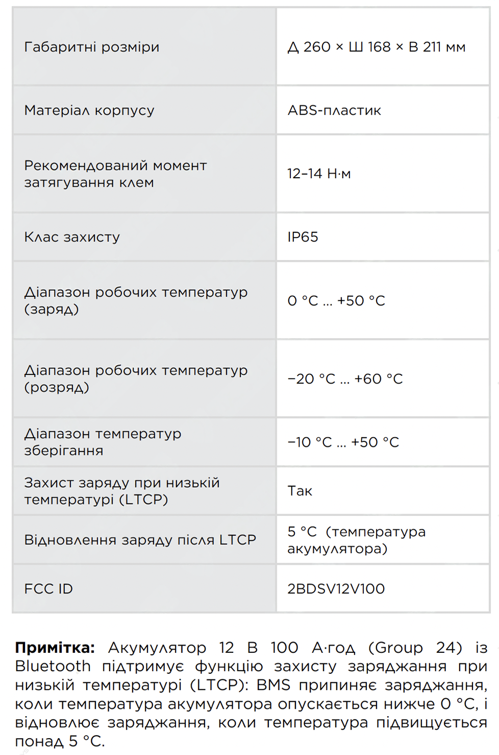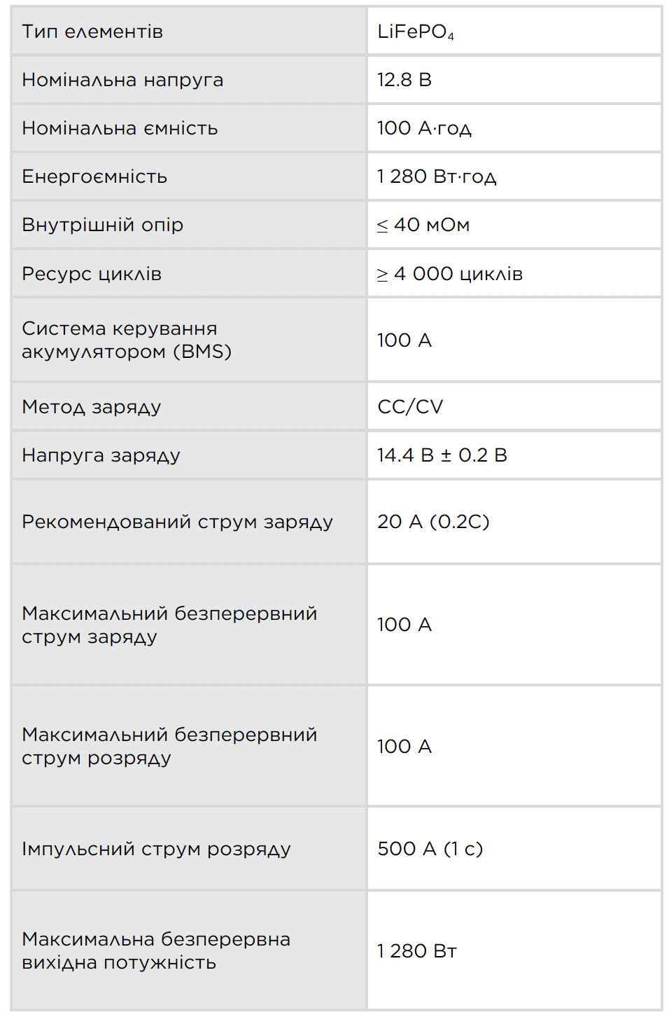 - Номінальна ємність батареї становить 100 А·год для потужних застосувань
