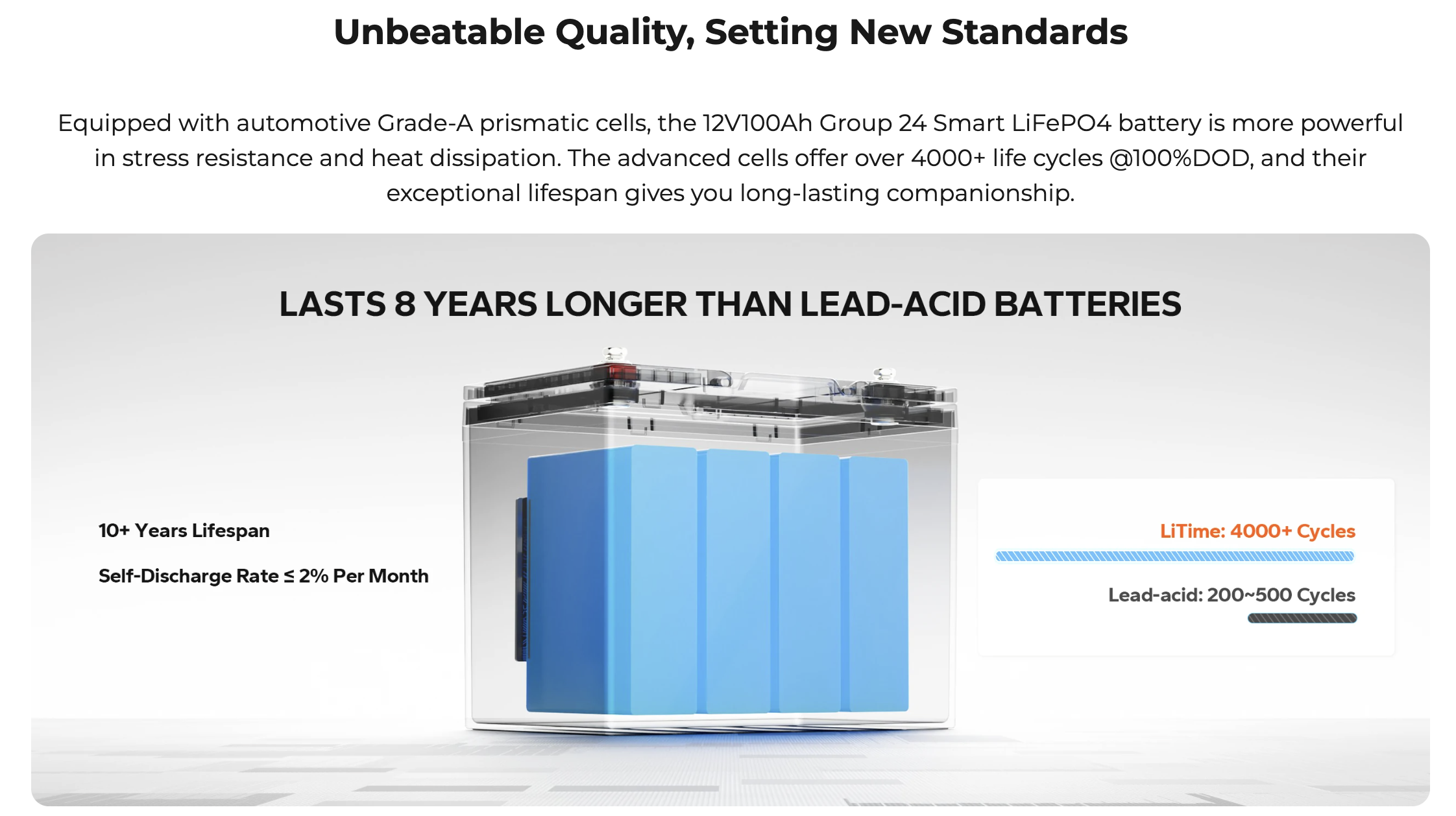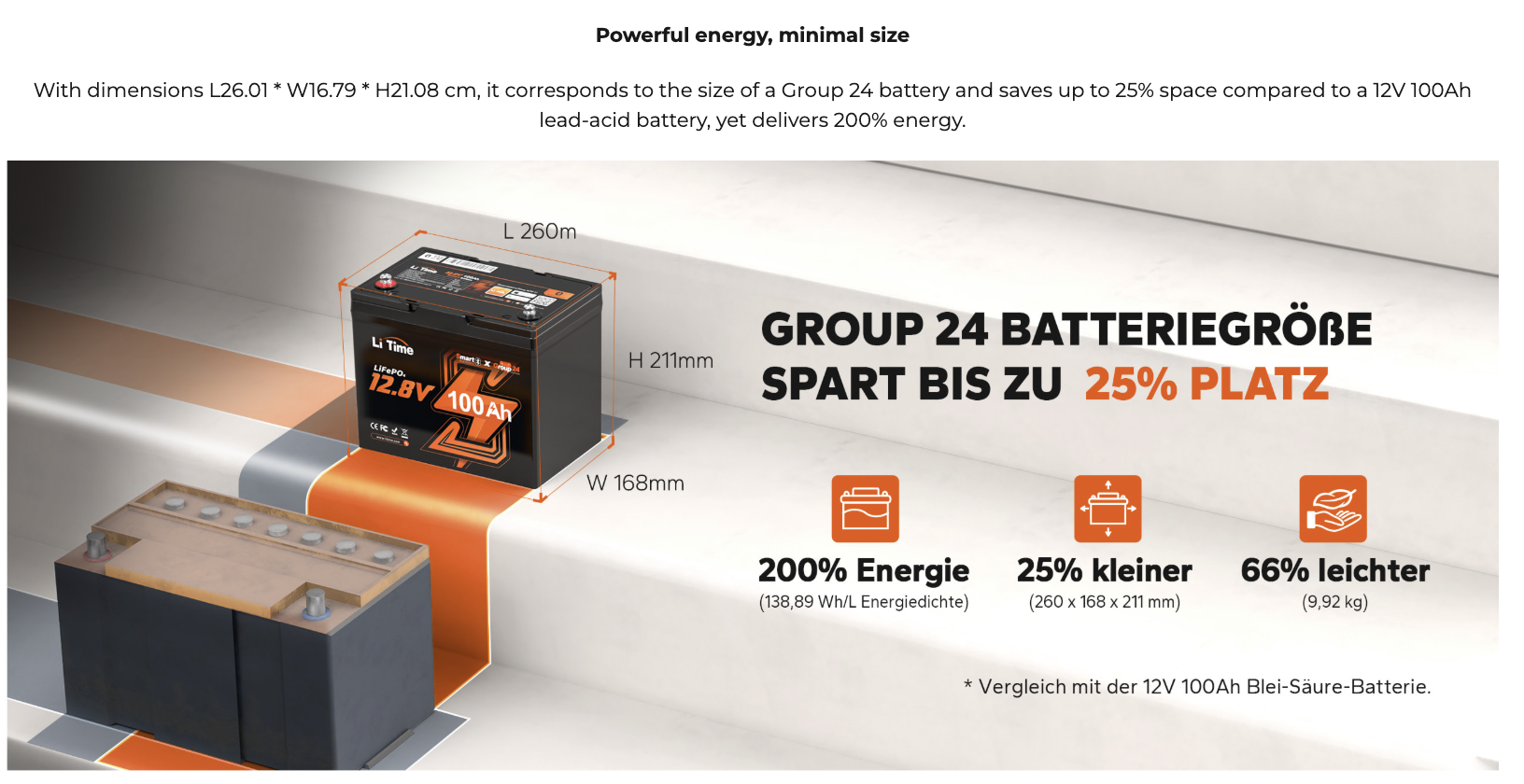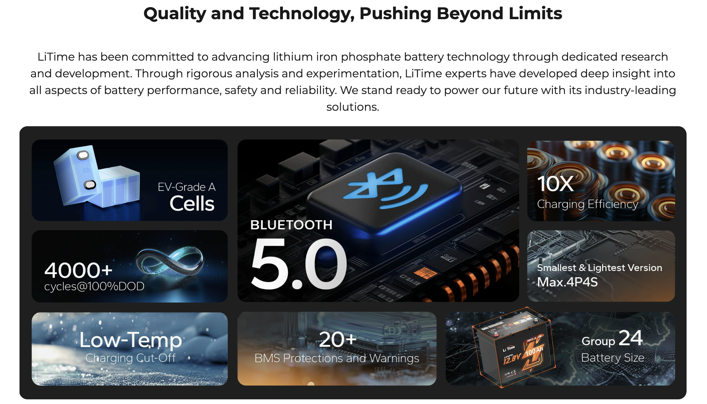 Конкретніше про Time LiFePO4 12.8V 100Ah Group 24 Smart Bluetooth