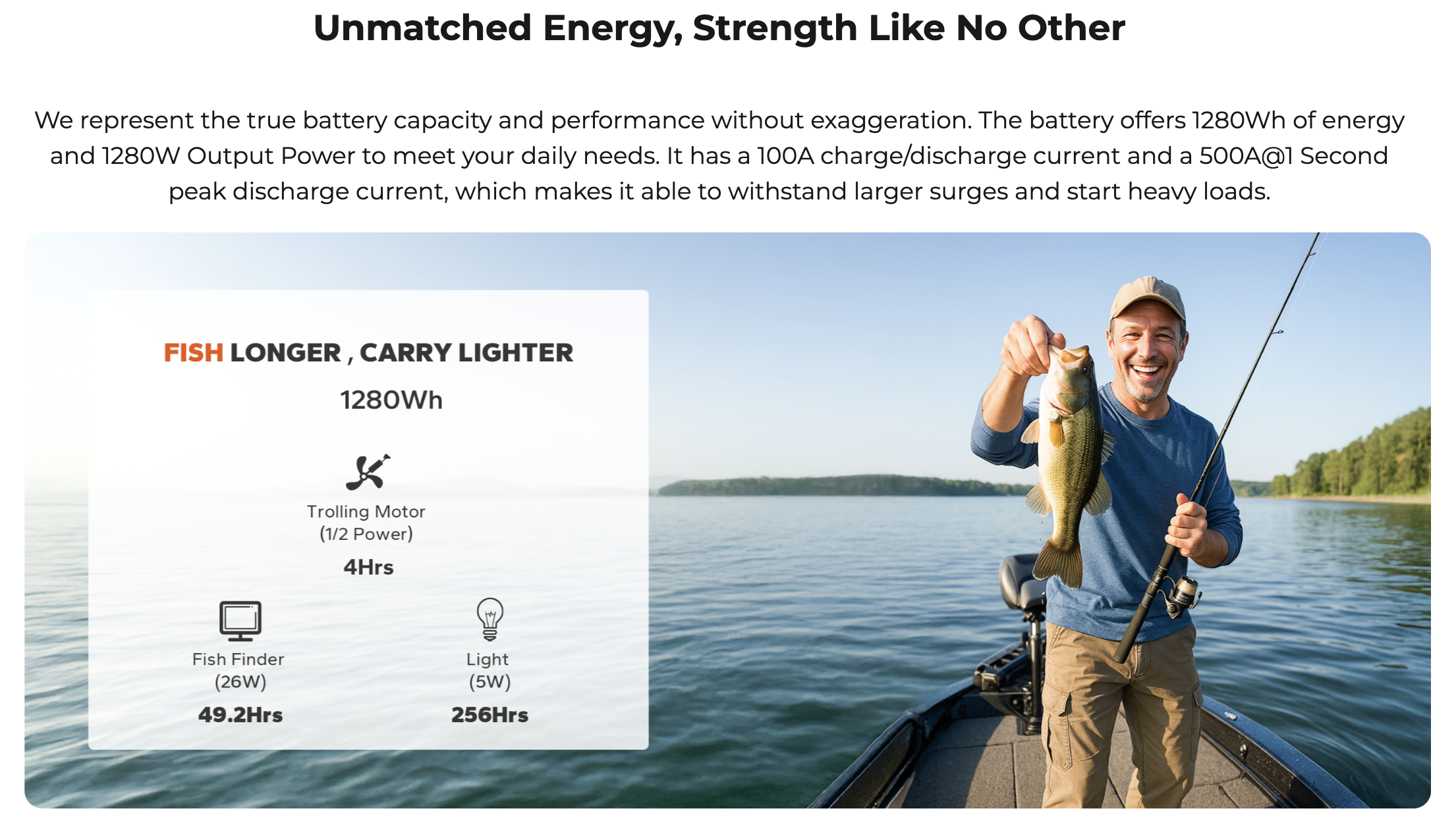 - Енергоємність акумулятора сягає 1280 ват-годин, дозволяючи тривалу роботу без підзарядки