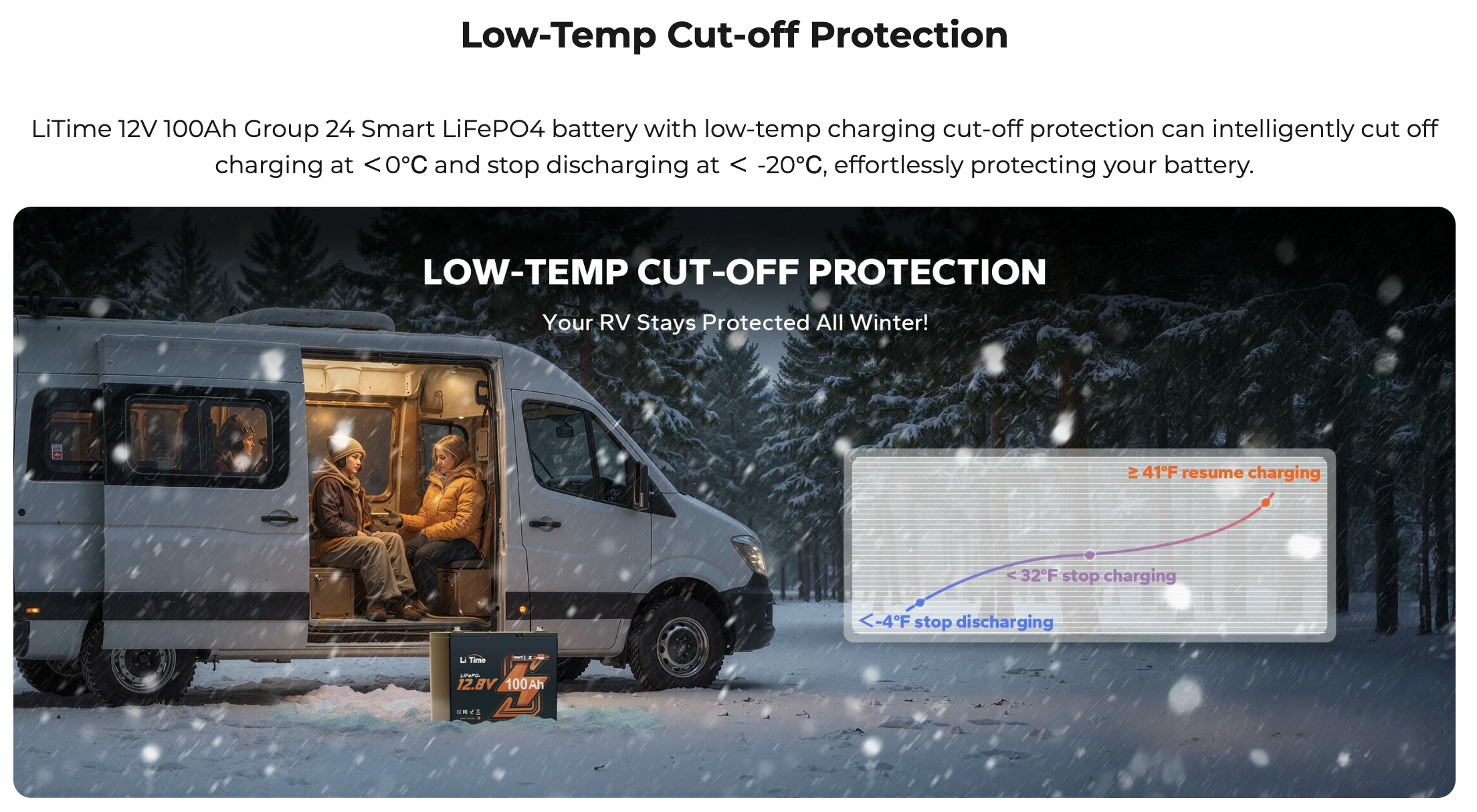 - Захист від заряду при низькій температурі активується нижче нуля градусів