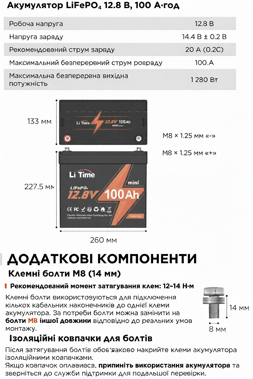 Детальніше про Time LiFePO4 12.8V 100Ah Mini