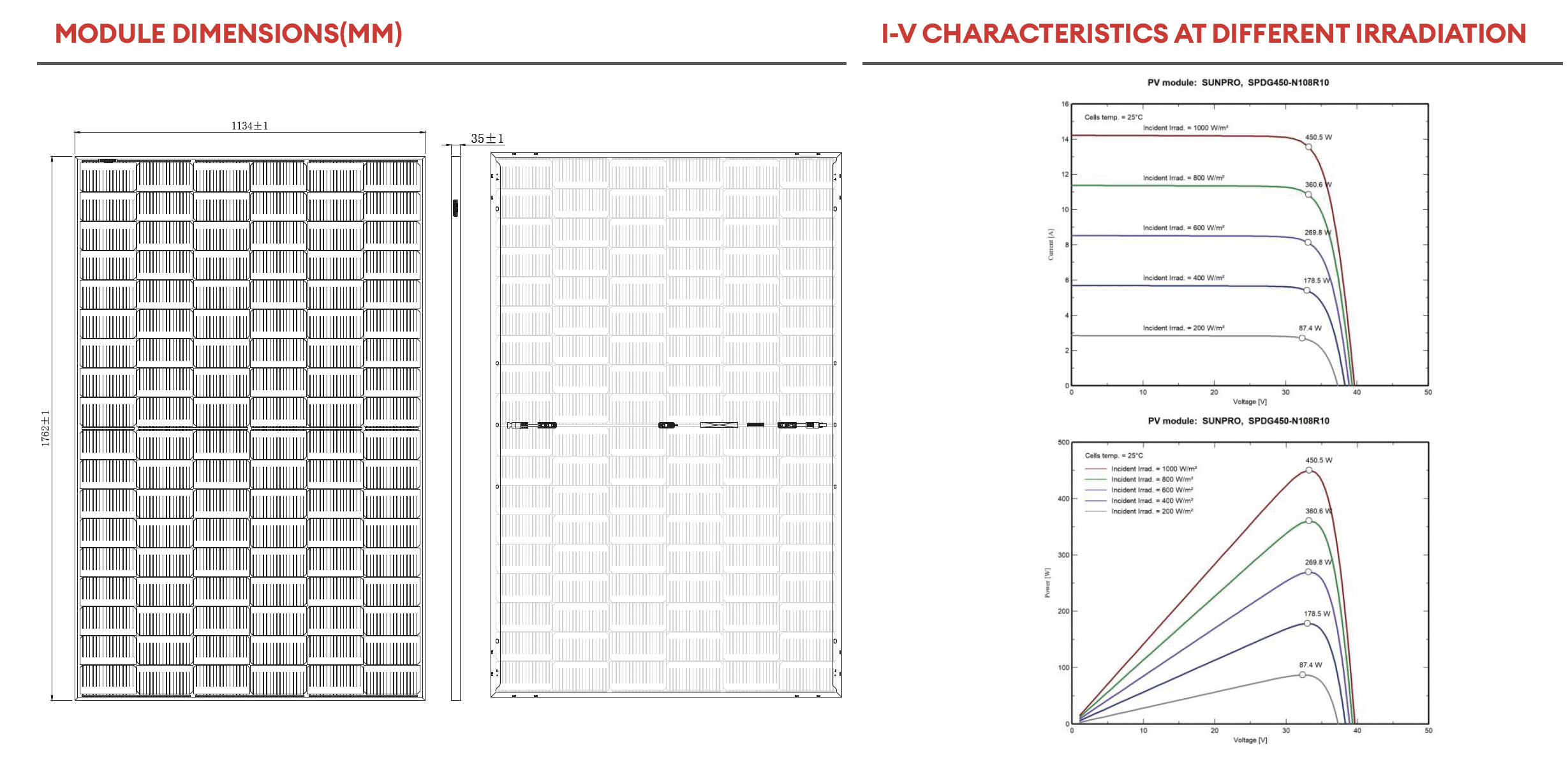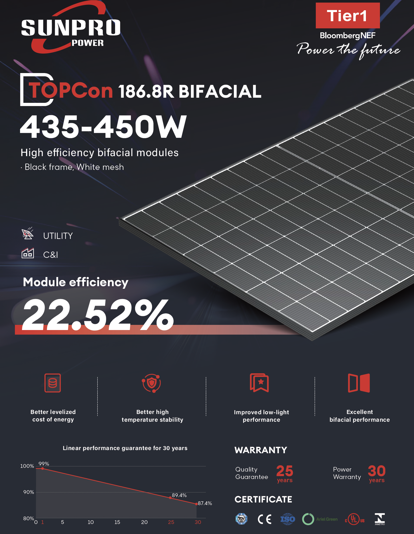 - Двостороння сонячна панель Sunpro Power потужністю 450 Ватт (чорний профіль).