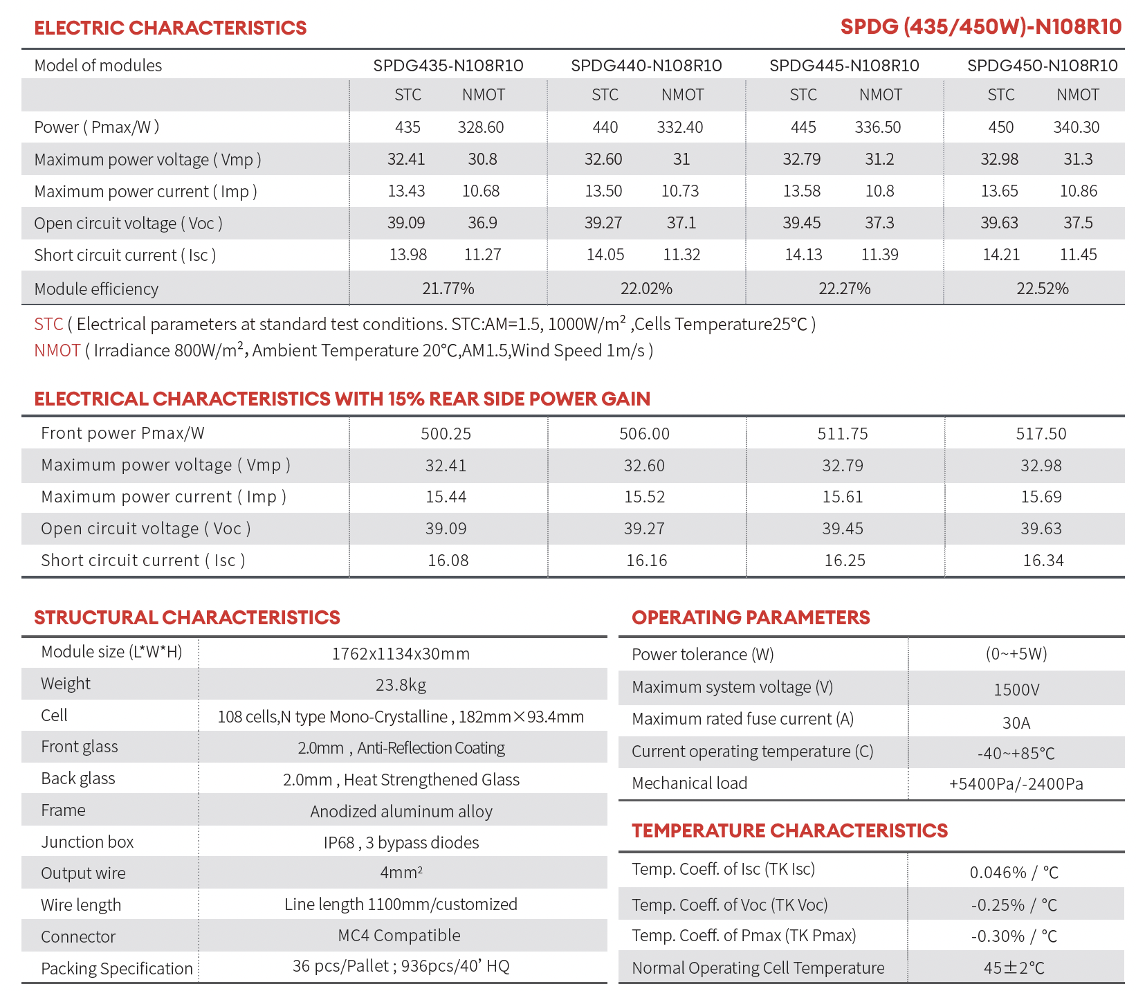 - Тип та кількість фотоелементів: 108 монокристалічних осередків N-типу